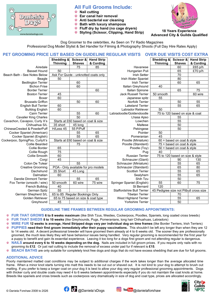 Pet Grooming Price List Share this: Share on X (Opens in new window) X Share on Facebook (Opens in new window) Facebook Like Loading...
